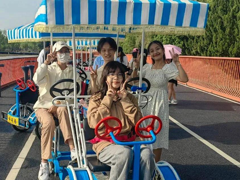 欢迎仪式结束后,志愿者们陪伴交换生开启研学之旅。漫步在校园的林荫小道,穿梭于文化气息浓厚的教学楼,参观先进的化工实验设备……每一处场景都将成为中泰文化交流的鲜活课堂。