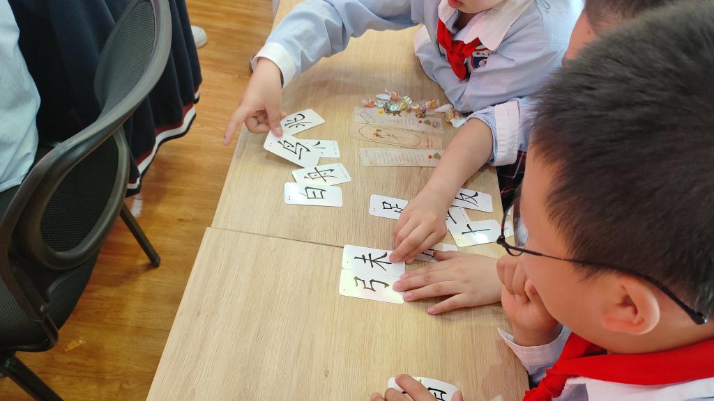 活动中,志愿者团队以“知识引导+实践创造”双线推进,打造四大特色场景。在“阅读小课堂”中,志愿者运用管理学案例教学法,生动演绎读书日文化内涵;“趣味竞答擂台”巧妙融入经济学博弈机制,以猜书名、识诗人等团队比拼形式,充分激发孩子们的参与热情;“造字工坊”环节借助偏旁卡片搭建汉字组合模型,引导儿童在“拓”、“纹”等创意拼字中感悟商业符号的演化逻辑;“阅读记忆工坊”则通过手工书制作实践,将抽象阅读体验转化为可触达的文创成果,让孩子们在动手实践中深化对阅读的理解与热爱。“原来文字可以像拼乐高一样有趣!”参与活动的儿童兴奋地展示着自己的作品。家长代表表示:“活动设计既有文化深度又充满巧思,展现了经管学科特色。”